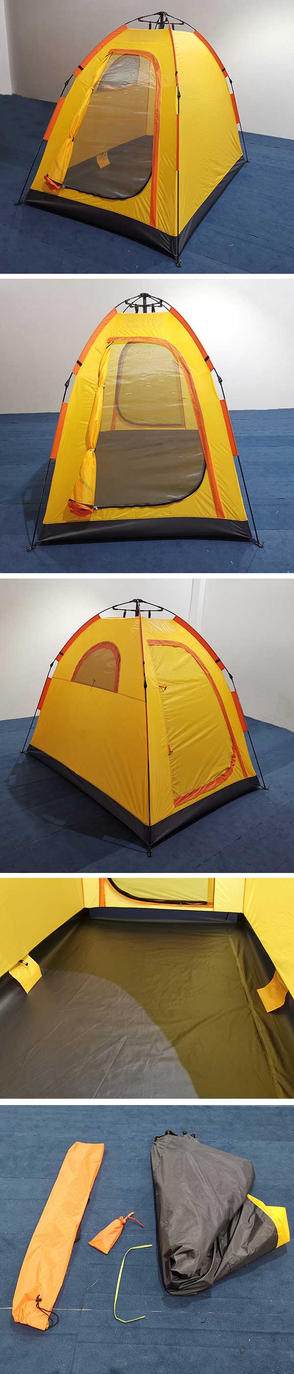 Whether a tent is waterproof not only related to how much water column of the fabric, the most important are design and workmanship. It sounds easy, but lots of tents on the market is fail to do so, even it mentioned water column 5000mm. Thanks for indoor rain test equipment, which make it possible to have light rain to storm anytime, it help us to find any leaking possibility to ensure us to be able to produce complete waterproof tent.please refer to below video