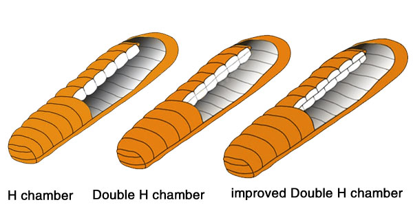 Improved double H chamber, as it’s name shows, it’s improved based on double H chamber. The sewing line on double H for both 2 layers are at same level, thermal will loss through these “cold pints”. In order to solve this problem, we designed this improved double H chamber.