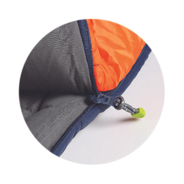 Double H chamber, which is most popular used for low temperature sleeping bag. There are 2 separate layers, the outer layer sew shell & one layer of insulation together and the inner layer sew lining and another layer of insulation together, then sew 2 layers together. This double H structure could have more insulation and better performance than H chamber to keep sleeping bag warmer. After lots of thermal insulation test with “thermal dummy”, we find there’s still “Cold Points”, so we apply an improved double H structure.