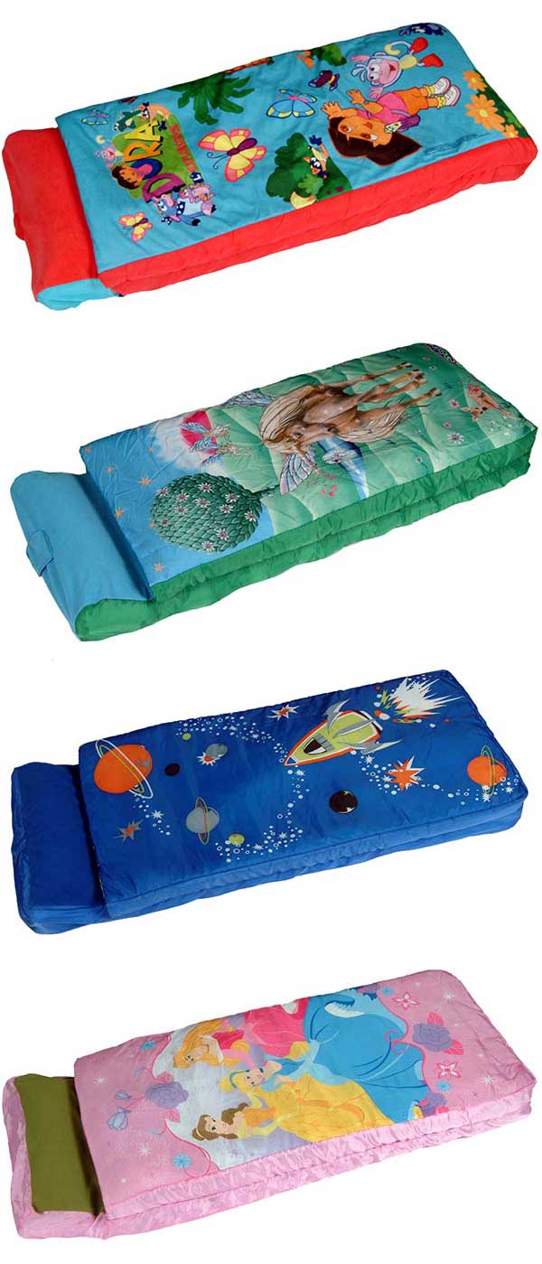Cartoon kids indoor and outdoor sleeping bag with self-inflatable mattress inside
