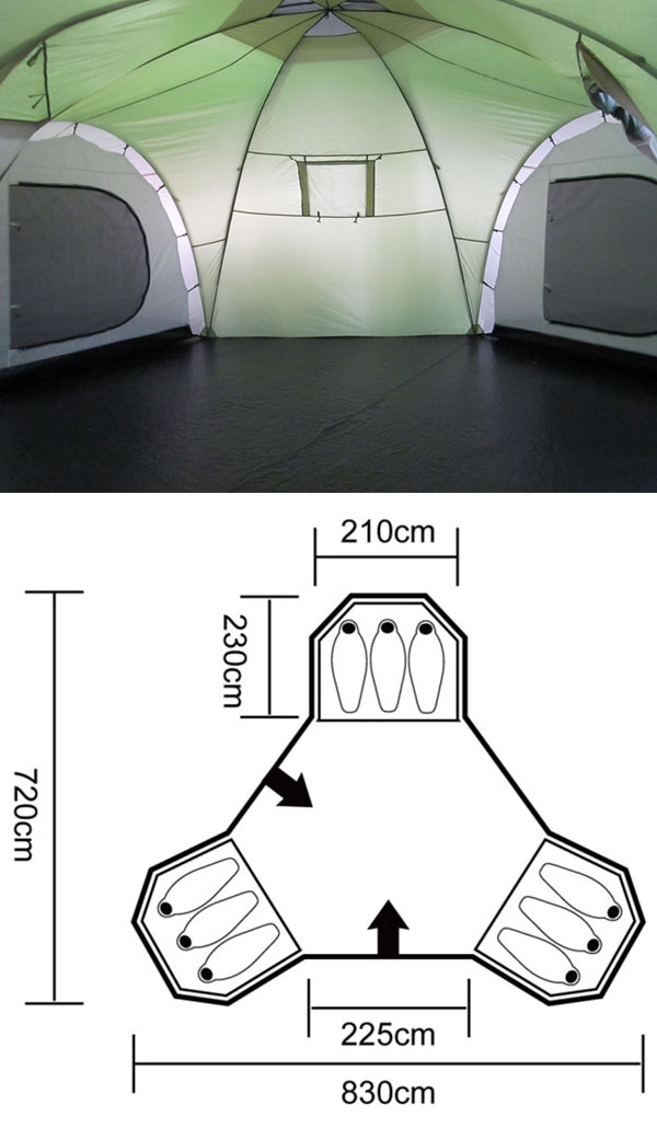 Outer tent size: 830 x 720 x 210cm